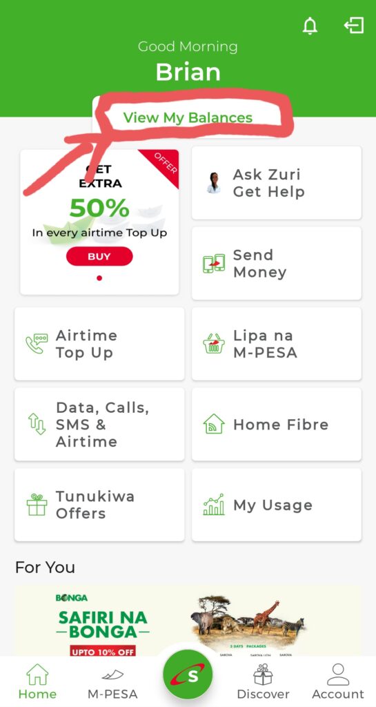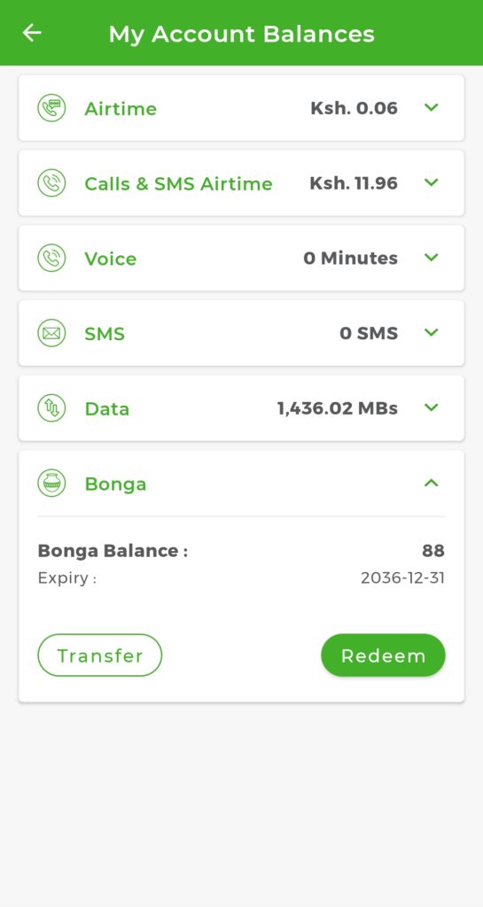 As stated earlier, the MySafaricom app bypasses the not-always-reliable USSD options. It allows users to easily check their data, airtime, Bonga Points, and SMS balances with just one click.